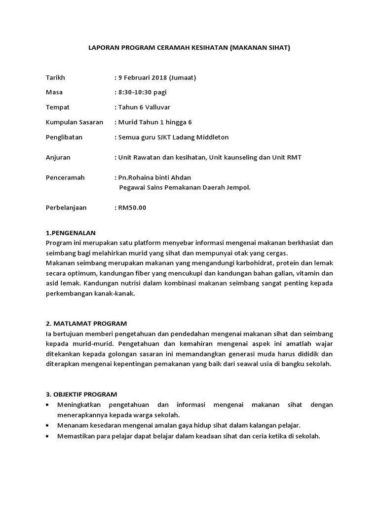 Laporan Program Ceramah Kesihatan Makanan Sihat
