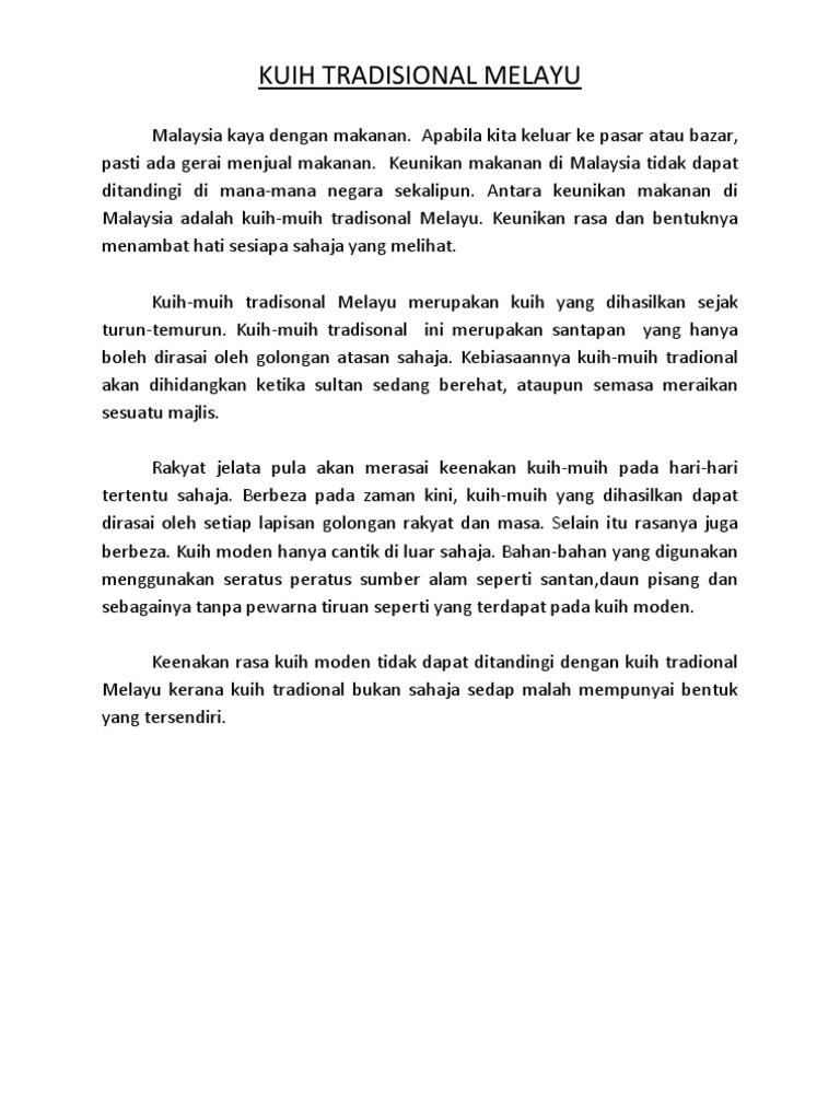 Satu lagi resepi kuih-muih tradisional Melayu yang boleh anda cuba dan penuh nostalgia ialah kuih bengkang tumis. Ad Save on Karangan Malaysia Hotels. Httpscintahullawebappkarangan-keistimewaan-kuih-muih-tradisional-di-malaysiahtml Kesimpulan Kesimpulan Secara Keseluruhan Dapat Dirumuskan Bahawa Makanan Tradisi Kaum Di Negara Malaysia Ini Dapat Membentuk Perpaduan Dalam Kalangan Course Hero.
